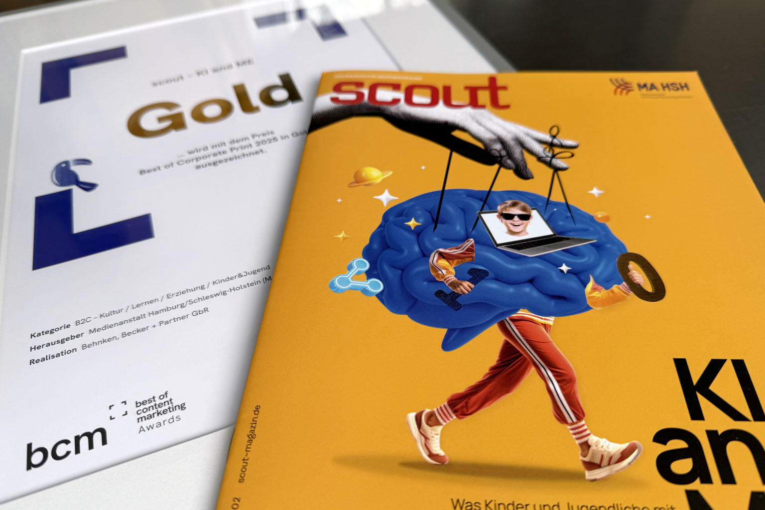 Bei den diesjährigen BCM-Awards wurde scout, das Magazin der Medienanstalt Hamburg/Schleswig-Holstein in der Kategorie „B2C – Kultur/Lernen/Erziehung/Kinder“ mit GOLD ausgezeichnet. Im Namen des ganzen Teams: Danke, liebe Jury, für diese Auszeichung, die wir zugleich als Statement verstehen: Im digitalen Zeitalter ist Medienkompetenz für den Schutz der Demokratie wichtiger denn je.